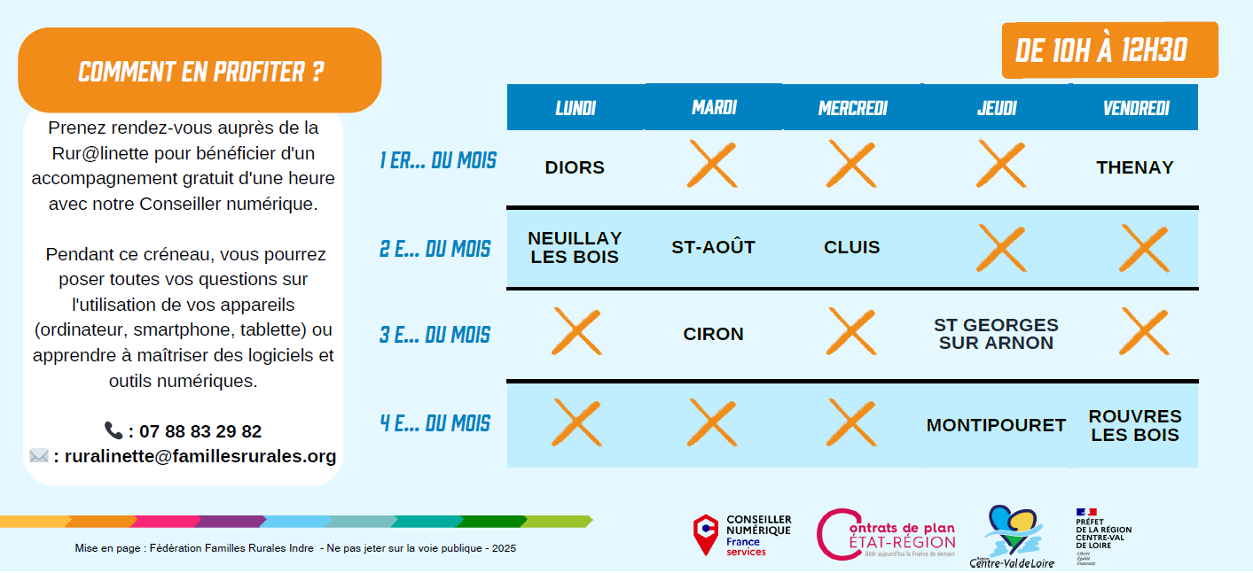 LA RUR@LINETTE est un accueil numérique itinérant labellisé Farnce Services GRATUIT et OUVERT A TOUS. Cet espace vous accompagne pour : |